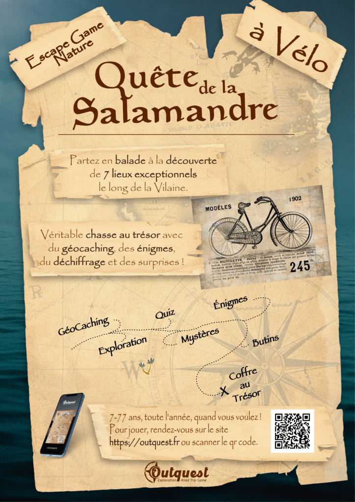 La Salamandre est un contrebandier filou, il a dissimulé son butin dans différentes caches le long de la Vilaine. A vous de toutes les trouver !