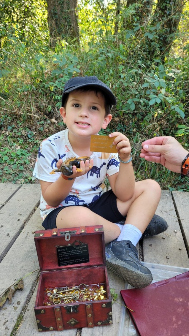 La dernière épreuve, la carte au trésor de la Salamandre est beaucoup plus difficile, faudra cogiter à la maison. Un véritable coffre au trésor est caché quelque part. Pas besoin d’une pelle. Le contenu de ce coffre sera communiqué prochainement.
